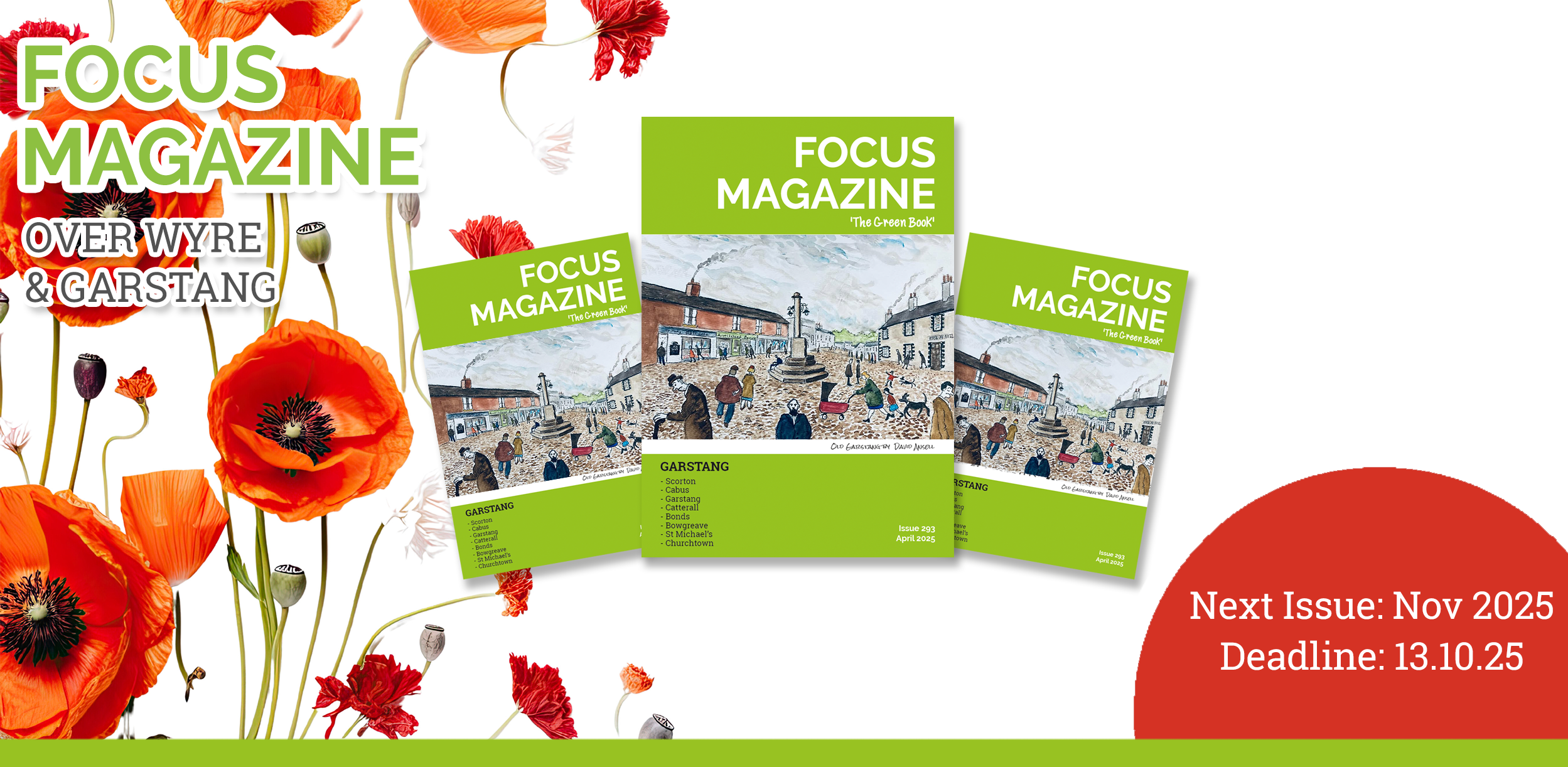 Advertise in Focus Magazine and reach over 17,000 local residents in Garstang & Over Wyre each month for a little over £1 a day!